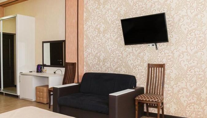 В номерах, оформленных в приятных приглушенно-пастельных оттенках, есть кондиционер, плазменный телевизор, небольшой холодильник, фен.
