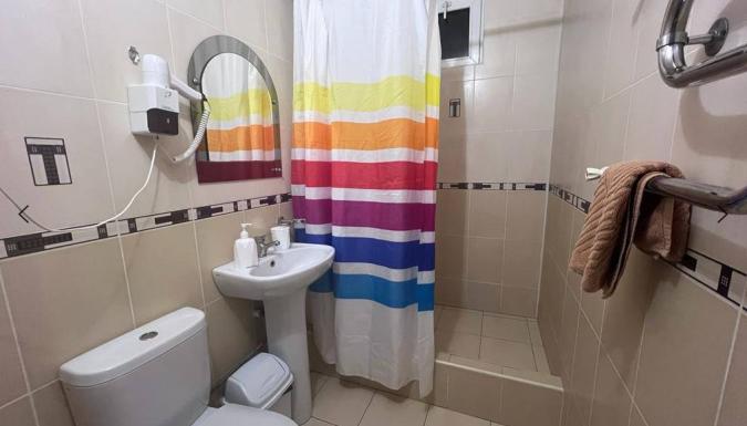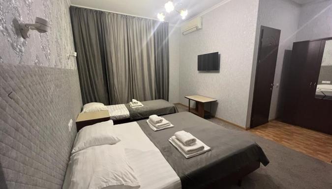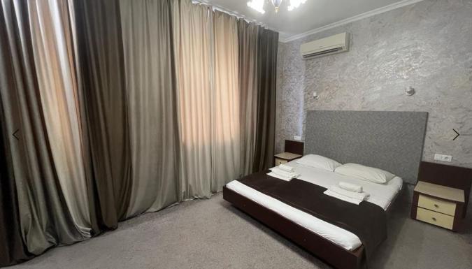 Все номера современные с классическим ремонтом и хорошей мебелью. В номере односпальные и двуспальные кровати, прикроватные тумбочки, шкаф, столик, стулья, зеркало. Из удобств: телевизор, сплит-система, холодильник, санузел, душ, балкон.