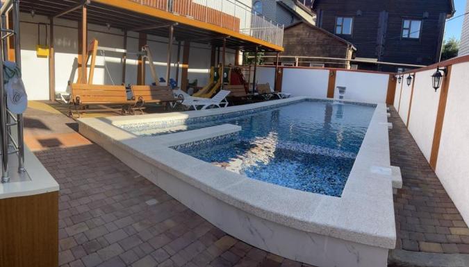 Новая лаундж зона с современным бассейном, шезлонгами и детской площадкой. Есть крытый бассейн, а также хаммам, сауна, зона мангала, бесплатный WI-FI. К услугам гостей сауна и крытый бассейн, трансфер от вокзалов и круглосуточная стойка регистрации.