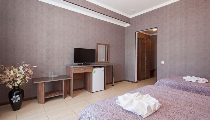 2-3-х- местные номера со всеми удобствами - санузел с душем, туалетом, фен, полотенца, телевизор, холодильник, кондиционер, балкон.