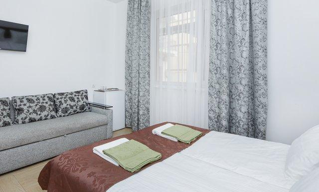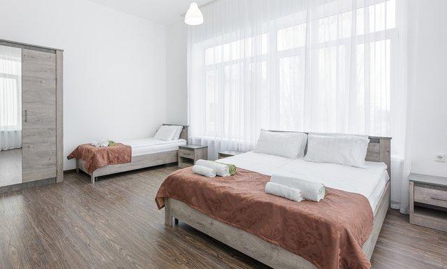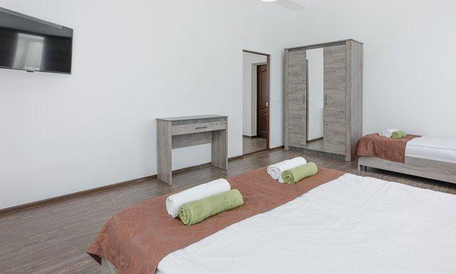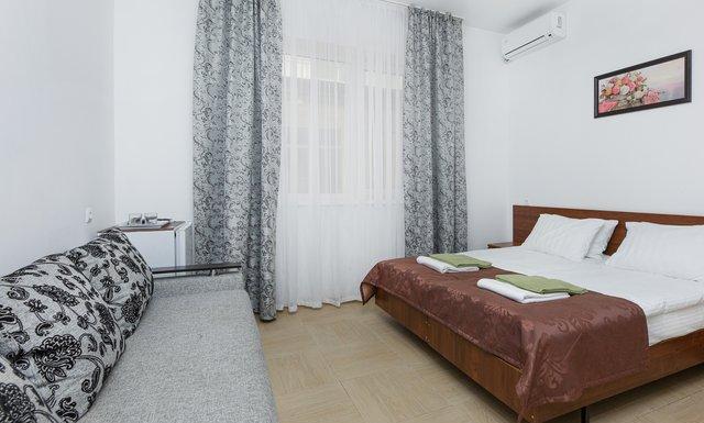 Отель, расположенный на первой береговой линии, состоит из двух трехэтажных жилых корпусов и отдельно стоящего здания столовой. Гостей ожидают светлые и просторные номера Стандарт и Люкс, а также комнаты на 4-м этаже в мансарде. В каждом номере имеется собственный душ, кондиционер, телевизор и холодильник.
