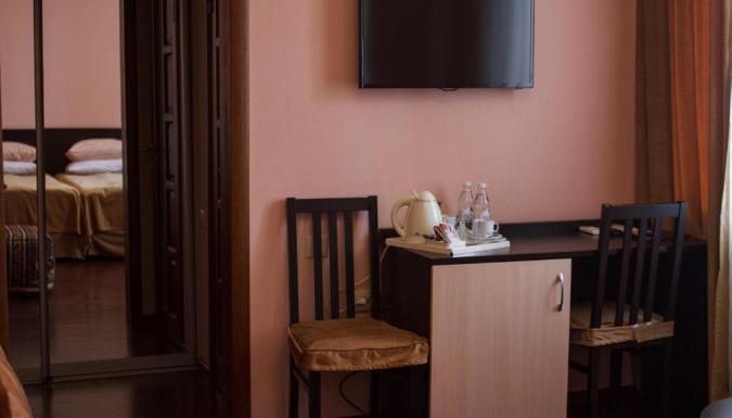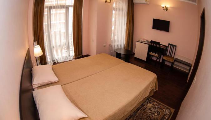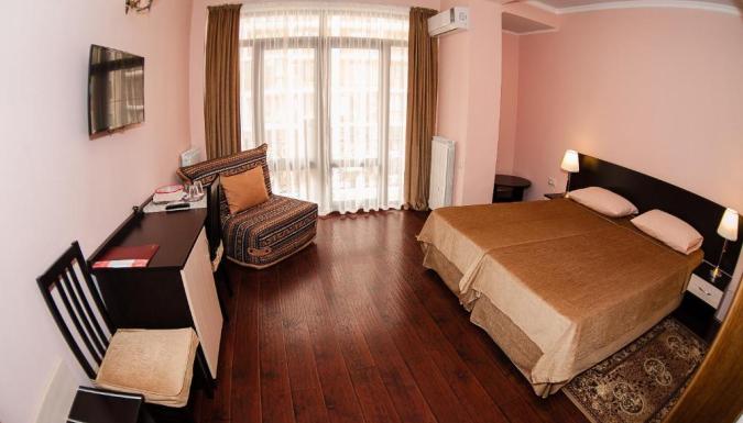В Отеле представлены несколько категорий номеров: «двухместный стандарт с балконом», «двухместный стандарт без балкона», и «трехместный двухкомнатный без балкона». В номерах есть все необходимое для комфортного пребывания: одно и двух-спальные кровати евростандарта, санузлы с душем, кондиционер, ТВ, холодильник, сейф
