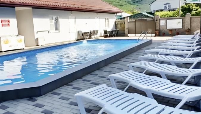 Гостевой дом “Вероника” располагается в Кабардинке, в спокойном и тихом месте. Рядом с гостевым домом есть все нужные магазины и развлечения, недалеко до центра и набережной – 15 минут пешком. На территории: К вашим услугам предлагается бассейн с гидромассажем и подсветкой, а также русская баня с бассейном и комнатой отдыха. Услуги гостевого дома располагают для комфортного пребывания и отдыха в Кабардинке.
