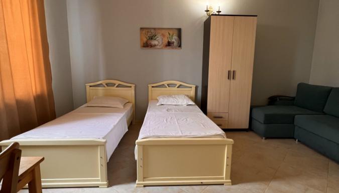 Максимальное размещение: 3 взрослых (2 раздельные кровати + диван) + 1 ребенок (0-1,99) без места (на основном месте со взрослыми) или 2 взрослых (2 раздельные кровати) + 2 ребенка (до 5,99 и до 11,99) на дополнительном месте. Дополнительное место: диван.