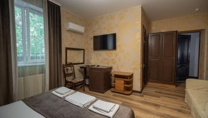 Гостей ожидают стандартные однокомнатные и двухкомнатные номера с индивидуальным санузлом. Во всех номерах установлен кондиционер, есть холодильник, телевизор и беспроводной интернет.