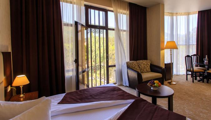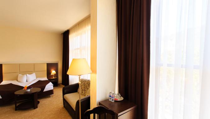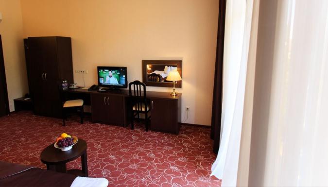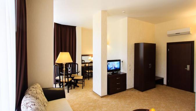 К услугам гостей размещение в спроектированных по европейскому стандарту номерах, из окон которых открывается прекрасный панорамный вид на море и горы. Номерной фонд располагает номерами категории Стандарт, Студия и Люкс. Вне зависимости от выбранной категории в номере есть все необходимое для отдыха: ЖК телевизор, электронный замок, сейф, питьевая вода, фен, халат, тапочки, туалетные принадлежности, бесплатный Wi-Fi. В каждом номере располагается двуспальная кровать и дополнительное спальное место.