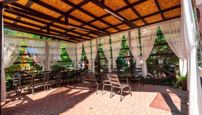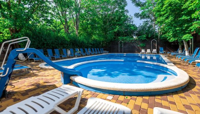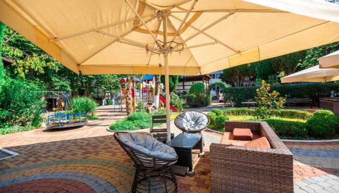 Инфраструктура пансионата обеспечивает отдыхающим целый набор курортных и бытовых услуг. Два круглогодичных бассейна под открытым небом с подогревом: взрослый и детский, беседки для отдыха, летнее кафе, а также хамам позволит с пользой и удовольствием провести время, не покидая территорию пансионата.