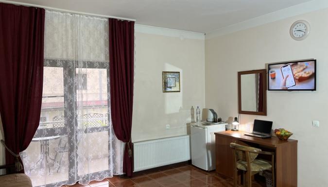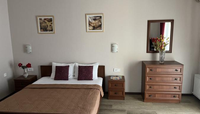 В гостевом доме 14 комфортабельных номеров. Все номера оснащены туалетными комнатами (туалет, умывальник, душевая кабина), телевизорами, холодильниками и кондиционерами. Холодная и горячая вода круглосуточно. Гостевой дом располагает автономной системой холодного и горячего водоснабжения.
