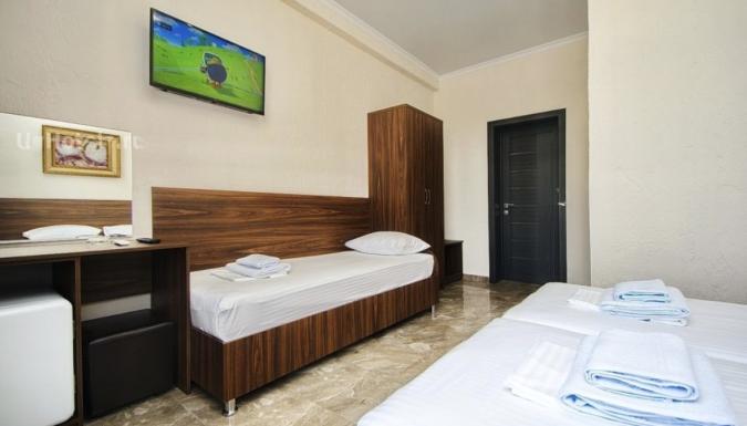 Отель расположен в центральной части Кабардинки. До моря 10 минут ходьбы.