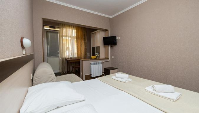 Во всех номерах холодильник, тв, кондиционер, санузел.