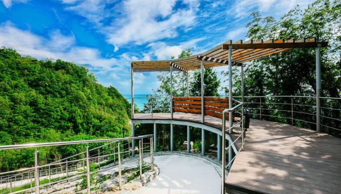 Санаторий расположен в Туапсинской курортной зоне Черноморского побережья, недалеко от поселков Шепси и Дедеркой. На территории есть большой парк для прогулок и терренкур до пляжа. Путь до пляжной территории проходит через живописный терренкур, длиной 350 метров (или 400 ступеней). Ходьба применяется в медицинской практике для оздоровления организма и профилактики многих заболеваний. По пути к береговой линии можно передохнуть в беседке и насладиться природным ландшафтом.