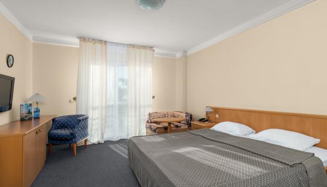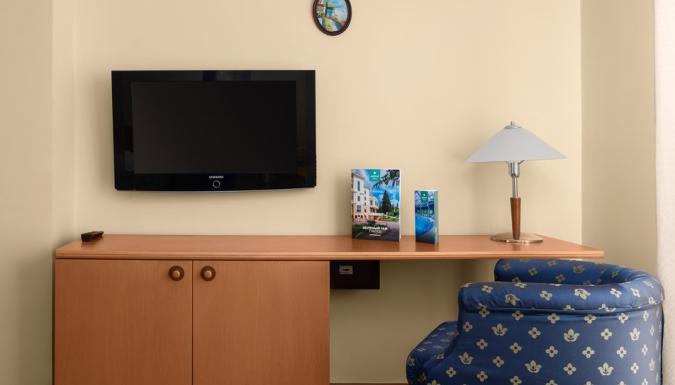 Номерной фонд санатория представлен уютными, комфортабельными и элегантными номерами. Гости имеют возможность выбрать проживание от Эконома до Апартаментов. Все номера имеют светлую отделку, которая придает помещению простор и легкость. Номера всех категорий оборудованы индивидуальным санузлом с душем, системой общего кондиционирования, телевизором, телефоном, холодильником. Сервис в номерах: Wi-Fi, смена полотенец, смена постельного белья, уборка номера, услуги внутренней телефонной связи.