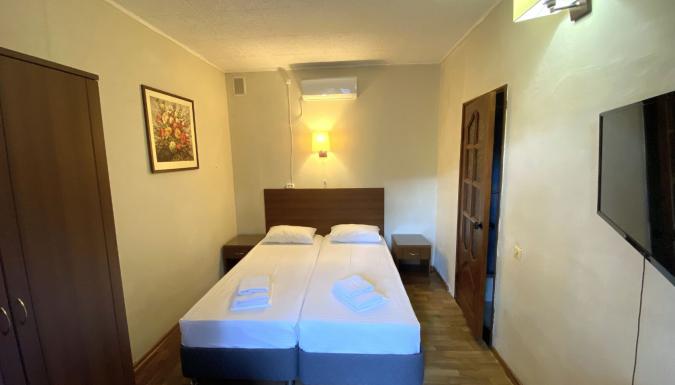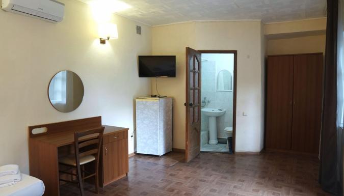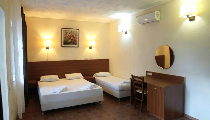 Отель предлагает номера от 2-местных до 8-местных апартаментов. Во всех номерах (кроме категории "эконом"): холодильник, ТВ, сплит система, санузел с душем, фен. В некоторых номерах есть балкон. Возможна установка дополнительного места