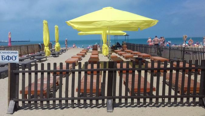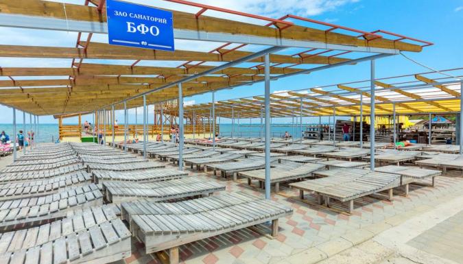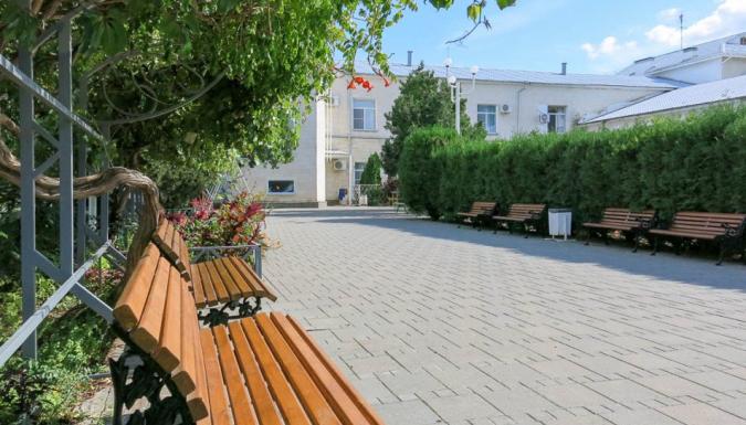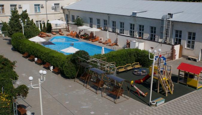 Территория санатория благоустроена, озеленена и разделена на две части. Основная часть: корпуса №1,3,4,6 расположены на проспекте Революции. Тут же находится лечебная база и столовая, бассейн, детская и спортивная площадка. Корпус №6 соединен переходом со столовой, лечебно-административным корпусом (бассейн, грязевое отделение, кабинеты врачей); корпус №1 соединен с водолечебницей, в корпусе №4 размещается физиотерапевтическое отделение Дополнительная часть: корпус «ЧИLL» ул. Калинина д. 2А - трехэтажный, расположен на дополнительной базе, расстояние 600 м или 5 минут ходьбы, питание и лечение проходит на основной базе. Все основные лечебные процедуры, питание и культурно-массовая жизнь санатория сосредоточена в его главной части. Галечный пляж находится в 450 метрах от основной территории санатория. На нем есть все для полноценного отдыха, работают кафе и служба проката. Песчаный пляж расположен в 15 минутах ходьбы от санатория. Вход на пляжи по санаторно-курортным картам санатория.