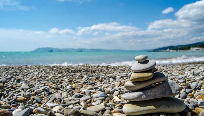 Мелкогалечный пляж в 15 минутах прогулки от гостевого дома. На пляже есть прокат шезлонгов, катамаранов.