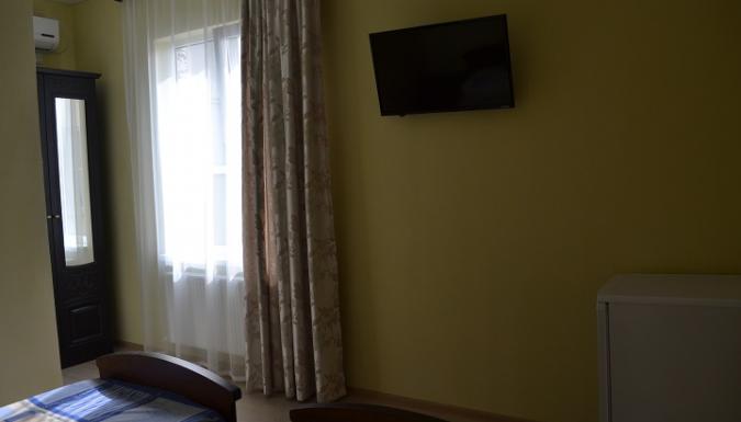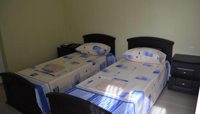 К вашим услугам предоставляются комфортные 2х местные номера (возможна установка дополнительного места). В каждом номере есть всё необходимое: сплит-система, телевизор, бесплатный интернет, сан.узел, душ. При необходимости можно в любое время воспользоваться утюгом и гладильной доской. Напротив номеров находится большая кухня, есть полный инвентарь для приготовления пищи. Удобные, светлые номера, новая мебель, чистое постельное белье.