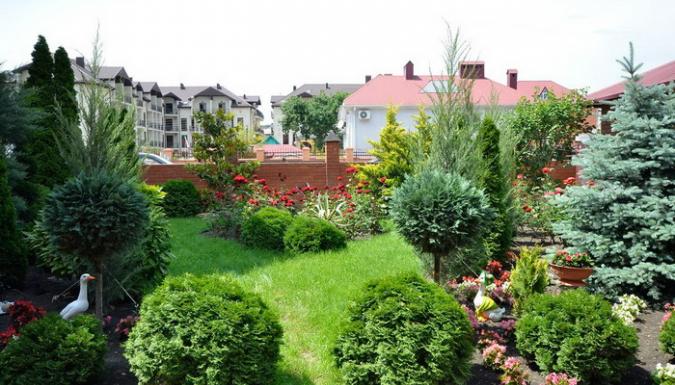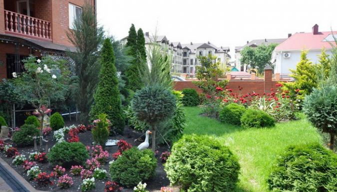 Территория: большая, огороженная, благоустроенная, утопающая в зелени и цветах, декорированная фонтанами и клумбами.