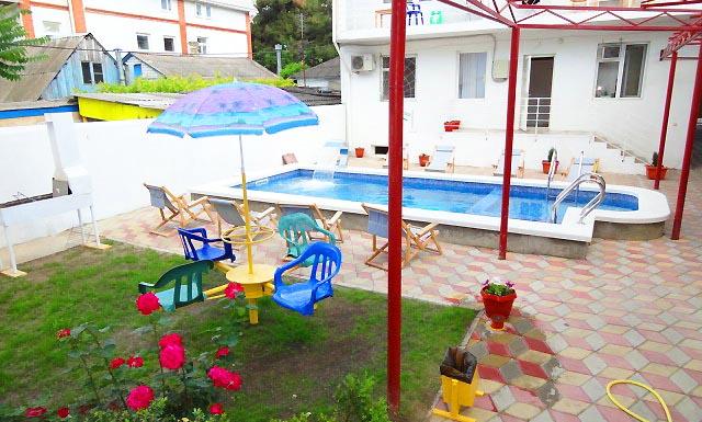 Гостевой дом «Илиадис» состоит из 3-х этажного и 4-х этажного корпусов. Отдыхающим предлагаются номера различных категорий. Территория гостевого дома имеет озелененный двор с беседкой и мангалом, бассейн, детская площадка, платная автостоянка.Рядом находятся Центральный рынок, автовокзал, парк аттракционов, аквапарк, многочисленные кафе и магазины, киноцентр, винные магазины, где можно приобрести отличные кубанские вина на любой вкус, множество игровых клубов, площадка для выступления приезжих артистов "Летняя эстрада", городской театр, 4 вещевых торговых комплекса, парикмахерская.