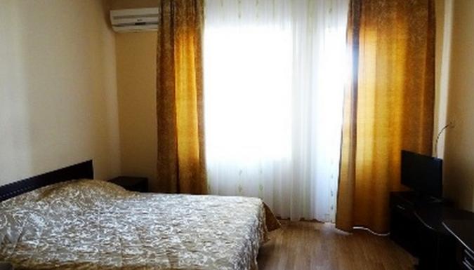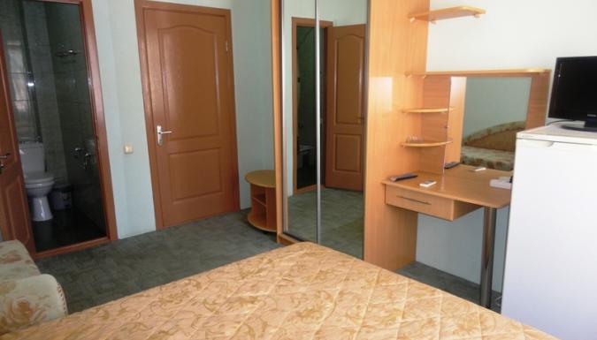 2-3-х местные номера: односпальные или двуспальная кровати, сплит-система, холодильник, телевизор, шкаф, прикроватные тумбочки, журнальный столик, зеркало, посуда, санузел.