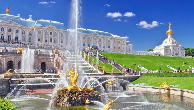 Следующий пункт нашего путешествия — Петергоф. Дворцово-парковый ансамбль с многочисленными фонтанами и статуями античных богов, покрытых золотом. Билеты в парк фонтанов оплачиваются дополнительно.