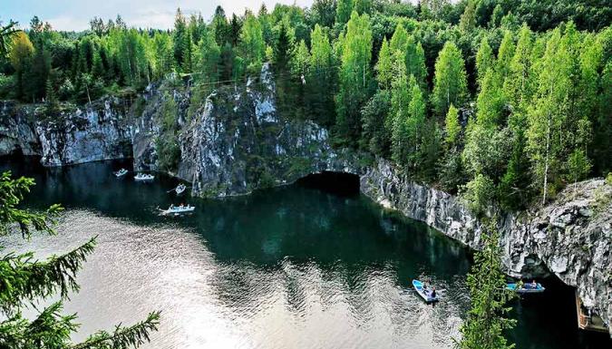 Нас ждет пешеходная прогулка по горному парку Рускеала. Да, именно здесь располагается визитка Карелии — мраморный каньон! В конце XVIII века здесь добывали мрамор для дворцов Петербурга, а потом карьер постепенно наполнился естественными водами.