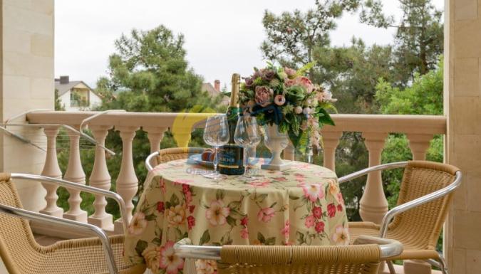 - 4-х местный номер Комфорт— кровати (совместные или раздельные), холодильник, телевизор, туалет, душ, кондиционер, на большой террасе ротанговая мебель и диван;