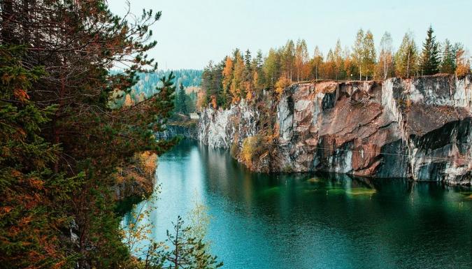 Посещение мраморного каньона Рускеала (входные билеты – доп.плата). У Вас будет свободное время неспешна прогуляться по мраморным аллеям, увидеть отвесные берега мраморных озер с прозрачной водой в красивейшей чаше из рускеальского мрамора с оборудованными смотровыми площадками.