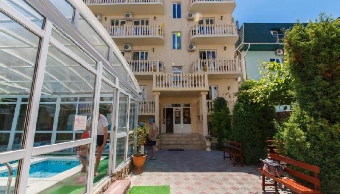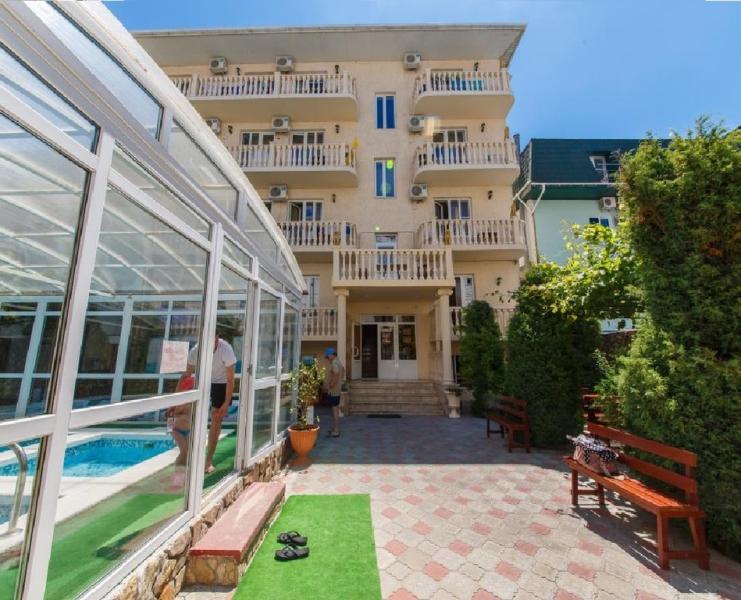 Современный отель возле АКВАПАРКА! Детская анимация! Все номера категории стандарт, просторные, в каждом КОНДИЦИОНЕР, ЖК ТВ, холодильник, санузел и балкон. 7-8 минут от моря!