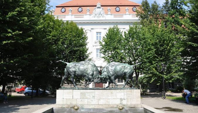 скульптура «Борющиеся зубры» перед зданием Земельного суда Кёнигсберга