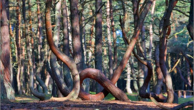 Вы посетите популярный эко-маршрут «Танцующий лес». Сосны, дубы, ели — стволы этих деревьев изогнуты в самых разных направлениях, поэтому создается эффект танца!