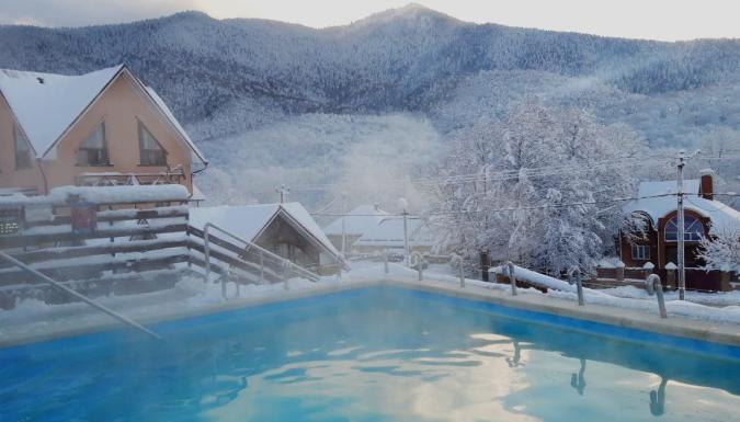 Посещение термальных источников. Снег, горячая вода термального источника, поднимающийся над гладью бассейна рассеянный теплый пар – все это отличное завершение хорошего дня. Удовольствия от купания в бассейнах с водой, обладающей целебными свойствами, добавляют водопады и гидро- и аэромассажи. Глубина взрослых бассейнов - до1,6м, детского –80см. Вода, обогащенная кремнием и серой, поступает в бассейны с глубины около 1800 метров. Температура воды – от 20 до 40 градусов.