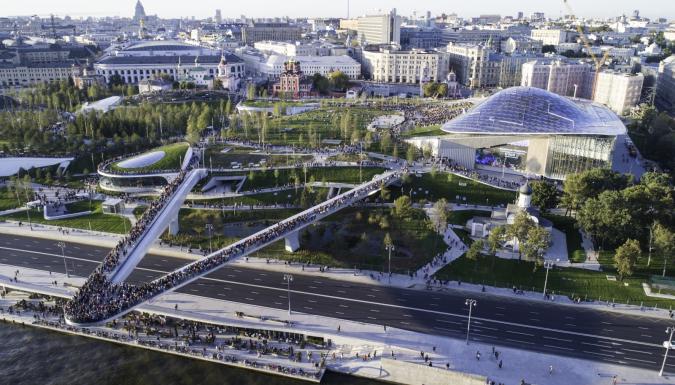 Свободное время в парке «Зарядье». На территории парка объекты культурного наследия XVI века соседствуют с инновационной архитектурой и высокотехнологичными аттракционами. С Парящего моста — бетонной консоли длиной 70 метров — открываются потрясающие панорамные виды на Кремль, центр города, набережные Москвы-реки и сам парк. В 2018 году американский журнал Time включил «Зарядье» в список 100 лучших мест мира — единственный объект из России.