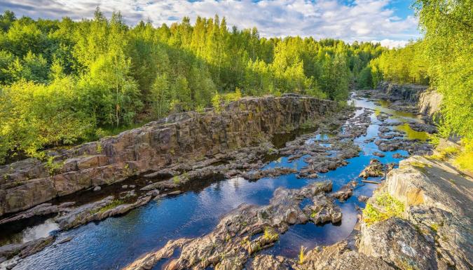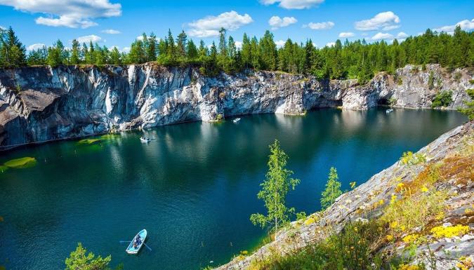 Нас ждет пешеходная прогулка по горному парку Рускеала. Да, именно здесь располагается визитка Карелии — мраморный каньон! В конце XVIII века здесь добывали мрамор для дворцов Петербурга, а потом карьер постепенно наполнился естественными водами.
