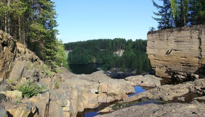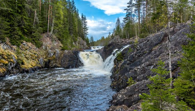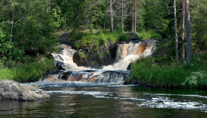 Наша первая остановка состоится около Тохминских водопадов. Место, где река Тохмайоки разбивается на несколько независимых водопадов. Кстати, здесь снимался фильм «А зори здесь тихие».