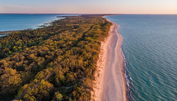 Национальный парк "Куршская коса" – это узкая полоска суши между двумя водоёмами: Балтийским морем и пресноводным Куршским заливом, её уникальность в редком сочетании природного и культурного наследия. Здесь можно насладиться морским бризом, прогуливаясь по бело песчаному пляжу, полюбоваться соснами, извивающимися в замысловатом танце, послушать несмолкаемые птичьи трели.
