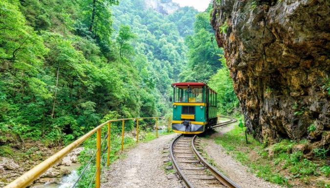 Экскурсия в Гуамское ущелье (доп. плата 900 росс. руб). Имея длину 3 км и глубину 400 м, ущелье сужается местами до 2 м. Это гигантская каменная щель, сильноизломанная в плане. Неиссякаемое восхищение вызывают обнажения горных пород по сторонам реки и многочисленные небольшие водопады, срывающиеся с отвесных скал. Также вас ожидает поездка по Гуамскому ущелью на раритетном поезде по узкоколейной железной дороге, извилистой лентой проложенной под скалами.