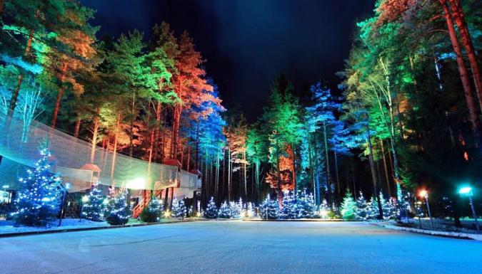 = большой каток в лесу, протяженностью 2 км, оборудованный подсветкой.