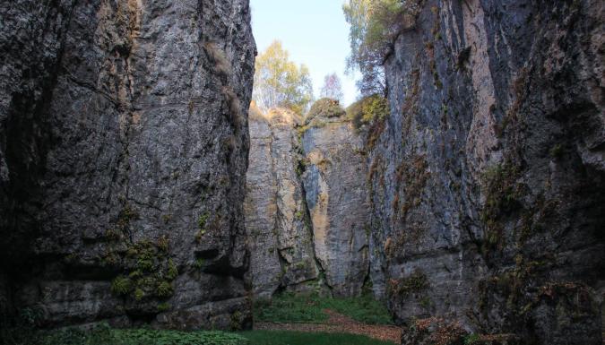 Теснина представляет из себя несколько сводчатых скалистых залов, переходящих один в другой и соединенных пещерами и узкими проходами. Стены украшены мхом и цветами. Оказавшись в этих каменных залах, человек погружается в невероятную, фантастическую атмосферу и наслаждается первозданной природной красотой.