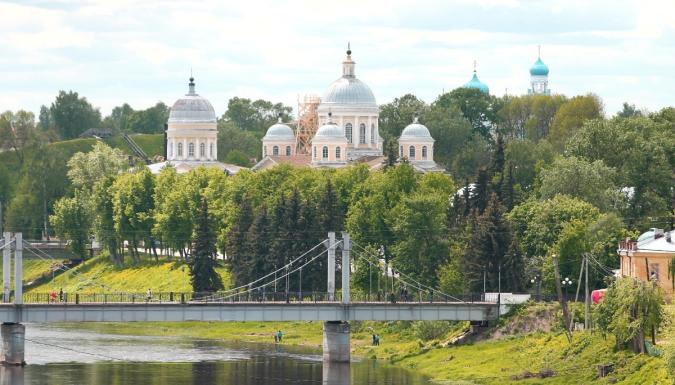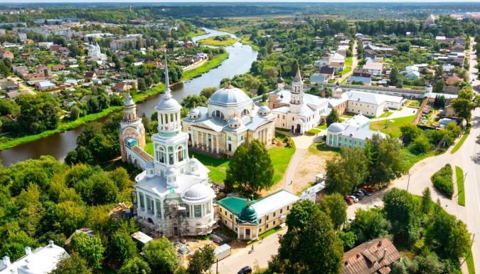 Обзорная экскурсия по уютному городу с остановками на трех главных видовых площадках города: круча Новоторжского Кремля, фотозона романтичного Парка Любви и мощеная набережная Тверцы с прекрасным видом на ансамбль Борисо-Глебского монастыря XI века