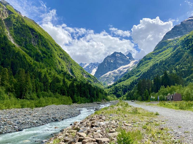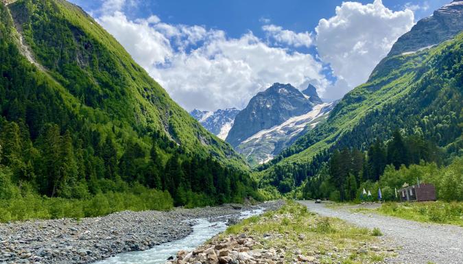 Погружение в удивительный мир Домбая начнется с уникального ущелья Алибек, где зародилась богатая история альпинизма! Путешествие на джипах до альплагеря станет настоящим приключением, а дальше нас ждет восхитительный поход к Алибекскому водопаду, одному из самых живописных уголков этого сказочного края.