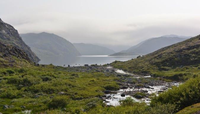 Батарейский водопад. Шумные потоки воды на фоне рубиновых скал — это невероятное зрелище! Насладившись им, мы поднимемся на соседний холм и полюбуемся невероятной панорамой Баренцева моря и Малого Батарейского озера.