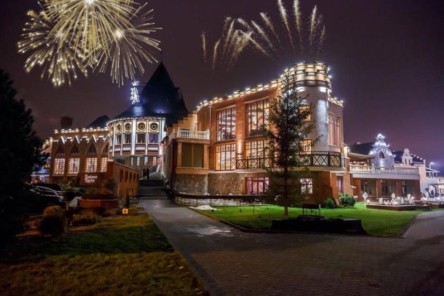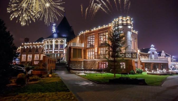 Новогодний банкет с шоу программой — 10500 RUB, детское меню — 7000 RUB (меню и программу можно получить у менеджера)