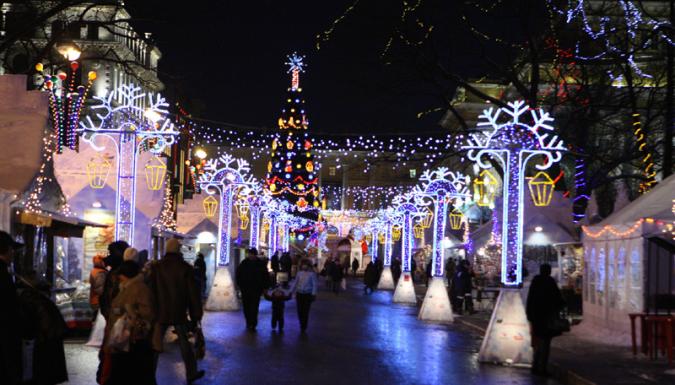 Далее мы отправимся на настоящую Новогоднюю Рождественскую ярмарку! Ежегодно ее оформляют в определенной стилистике. Здесь можно купить различные сувениры, вкусные подарки или что-нибудь диковинное. В самом центре заливают каток, рядом ставят сцену, на которой проходят выступления и иные развлекательные действия. Также на Новогодней ярмарке можно покататься на санях, запряженными волшебными оленями. Это особенно нравится маленьким детям. На ярмарке располагаются украшенные тематические домики купцов, а также специально отведенные места, где вы можете отведать национальные блюда различных стран мира.