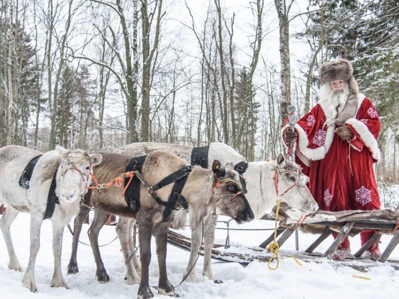 Завтрак (поздний). Выезд на экскурсионную программу за город в резиденцию к ТАЛВИУККО – ГЛАВНОМУ ДЕДУ МОРОЗУ КАРЕЛИИ! Вас радушно встретят помощники Карельского Деда Мороза и покажут удивительные вещи: ферму настоящих северных оленей, обученных ходить в упряжке, саамскую деревеньку, в которой вы познакомитесь с бытом и традициями первопоселенце в Карелии, питомник ездовых собак, где обитают сибирские и аляскинские хаски, самоедские лайки и аляскинские маламуты, и конечно подворье любимых домашних животных Зимнего Деда.