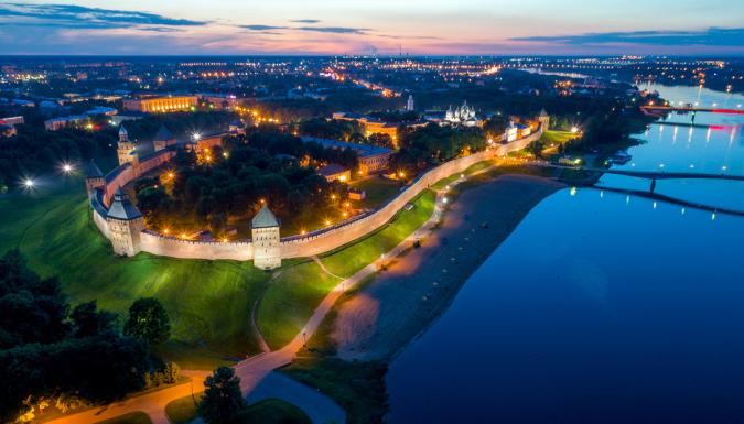 Автобусно-пешеходная экскурсионная программа по городу (включено). Знакомство с городом начнется с левой, Софийской стороны, где высятся толстенные башни Новгородского Кремля, древнее название которого — Детинец. Именно здесь, в Кремле, собиралось знаменитое Новгородское вече. Заложен Детинец Ярославом Мудрым в 1044 году и это самое древнее в России оборонительное сооружение. До наших дней сохранились 9 из 13 башен Кремля и некоторые участки стен.