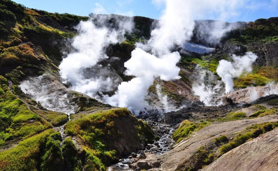 На комфортабельном джипе мы отправимся в Мини-долину гейзеров или Дачные источники. Это активное фумарольное поле. Горячие газы из-под земли нагревают холодную воду горного ручья, образуя фонтаны из воды и пара. Их вид действительно напоминает извергающиеся гейзеры. Вид фантастический!