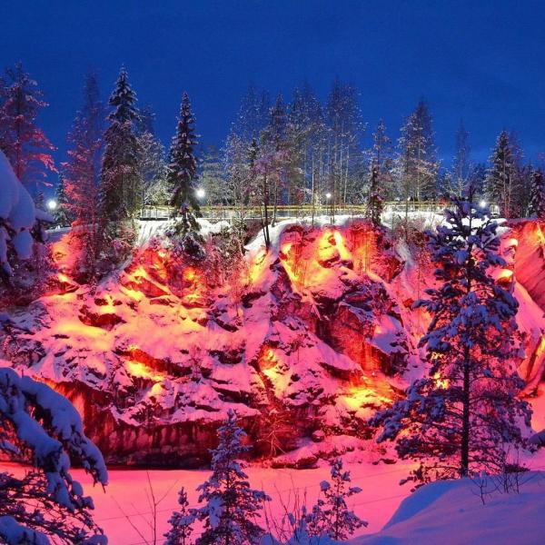 Прогулка по Рускеальскому горному парку - Мраморный каньон - парк создан в 2005 году на базе уникального памятника индустриального наследия России - Рускеальского мраморного карьера. Добыча мрамора была начата здесь в 1769 г по указу Екатерины II для украшения известных сооружений Петербурга: Мраморного дворца, Исаакиевского собора, Мариинского дворца и др. Сочетание природы Карелии и деятельности человека придали этим карьерам удивительно живописный вид, который привлекает любителей путешествий не только из Карелии.
