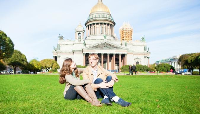 Либо отправится на загородную экскурсию в Царское село – знаменитый музей-заповедник, известный великолепными дворцами и садово-парковыми комплексами (за доп. плату ). Наша программа включает посещение Екатерининского дворца – официальной летней резиденции трёх российских правительниц — Екатерины I, Елизаветы Петровны и Екатерины II. Великолепное бело-голубое здание, украшенное позолоченной лепниной, вызывает восхищение у туристов. Посетим также одну из главных достопримечательностей Царского села — Янтарную комнату в Екатерининском дворце. Это копия оригинальной комнаты, вывезенной немцами во время второй мировой войны. Ее интерьер восстановлен по чертежам оригинала. Три стороны комнаты декорированы восхитительными янтарными панелями. Четвертая стена состоит из огромных окон. Вас ждет также экскурсия по великолепному парковому комплексу Царского Села. Здесь расположены красивейшие пруды, великолепные скульптуры знаменитых мастеров XVII — XVIII веков, водоемы с островами, декоративные павильоны, строения в экзотических стилях. Сможете осмотреть снаружи Александровский дворец – величественное здание 18-го века, которое в свое время стало подарком Екатерины II внуку князю Александру Павловичу в день его бракосочетания.