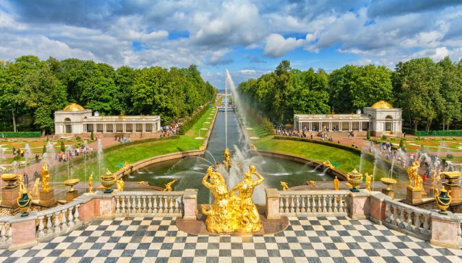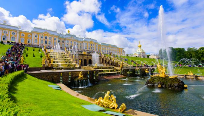 Посещение Нижнего парка Петергофа, так называемого «Русского Версаля». Подобное название загородная резиденция российских императоров получила не напрасно. Сегодня в этом районе Санкт-Петербурга действует музей-заповедник, который был включен в список ЮНЕСКО, как объект всемирного наследия. Неповторимый облик Петергофу придает великолепное сочетание архитектурных построек, фонтанных комплексов и парковых зон. Большой Петергофский дворец поражает своим размахом, респектабельностью и великолепием. Ансамбль был построен во время правления Петра I и с того момента не менял своего облика. После ВОВ объект был полностью отреставрирован, поэтому стройность колон, размашистость лестниц и блеск золотых фонтанов доступны для осмотра туристами во время экскурсий.