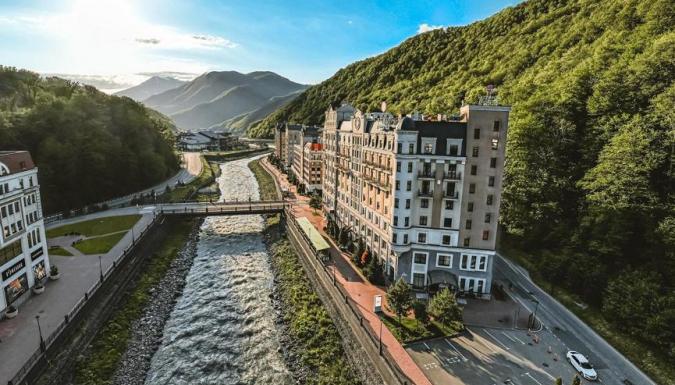 До набережной "Роза-Хутор" 300 м.